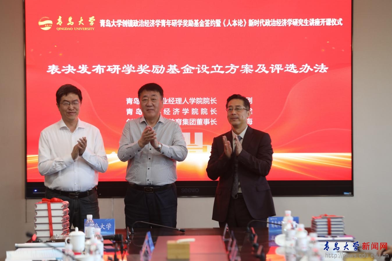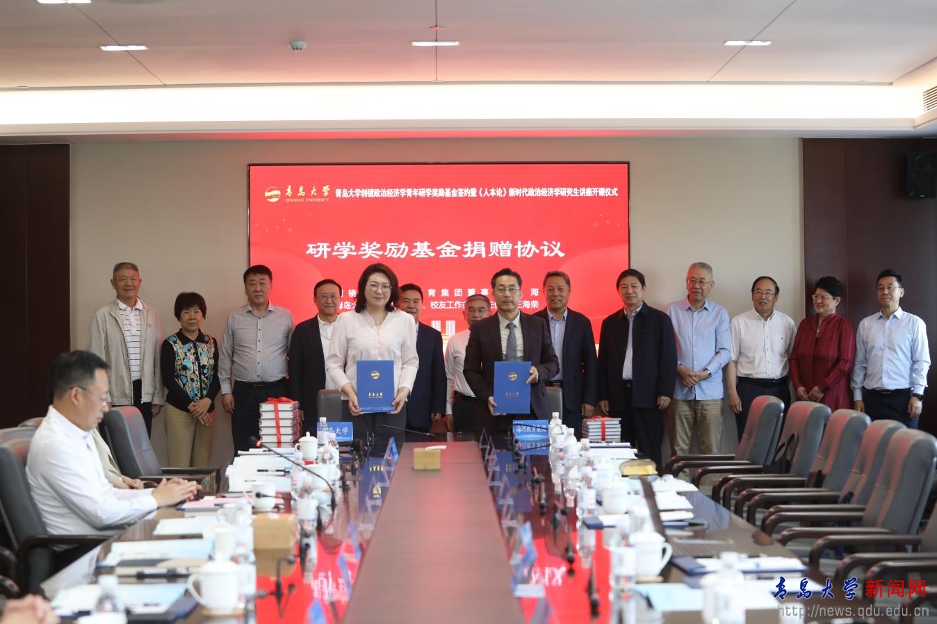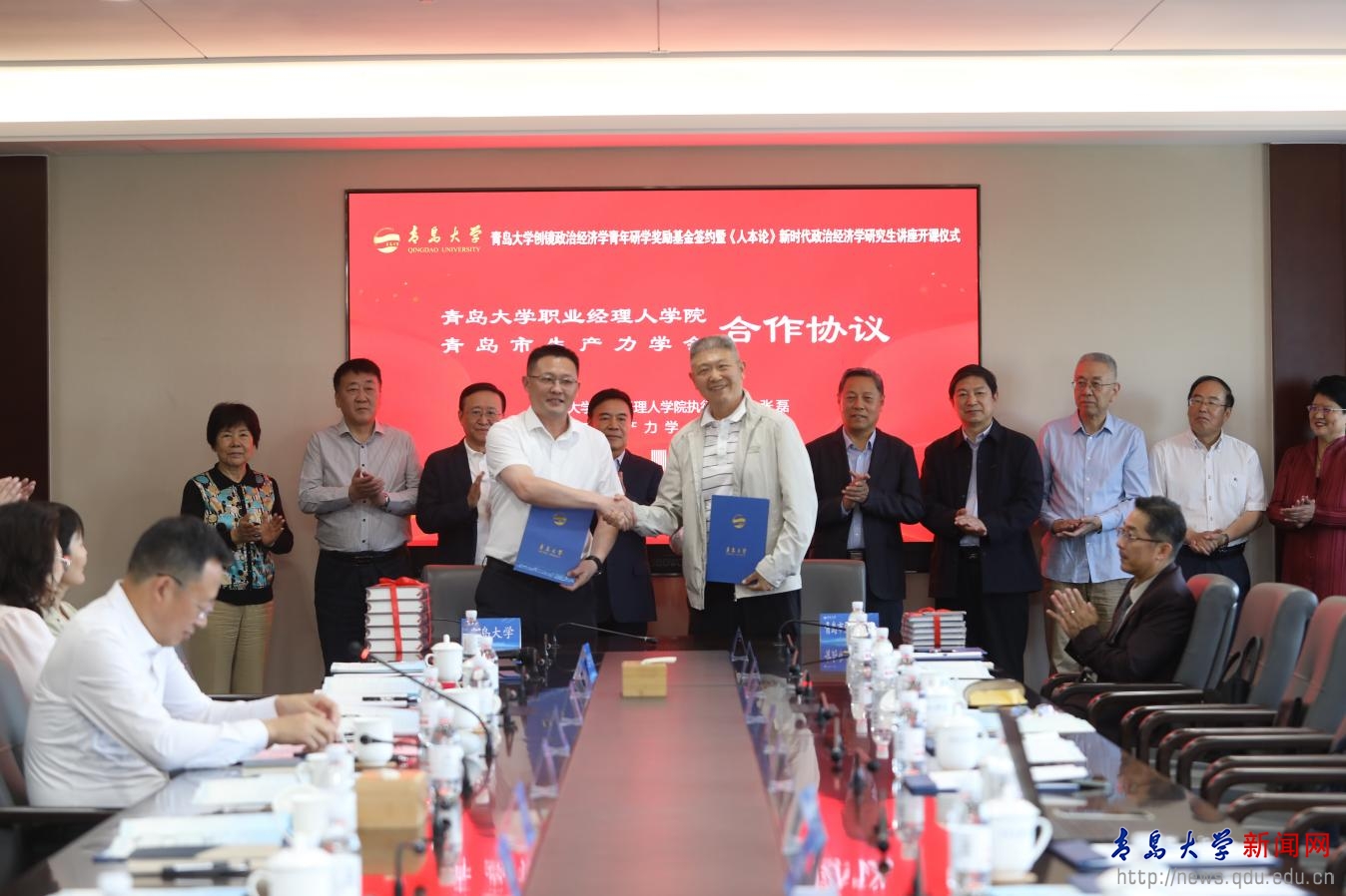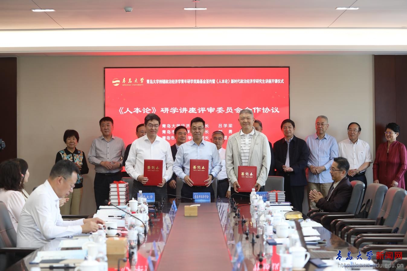 经济学院院长吕学梁、青岛市经济学会秘书长刘勇与青岛市生产力学会秘书长冯显泉签署基金评审委员会合作协议。