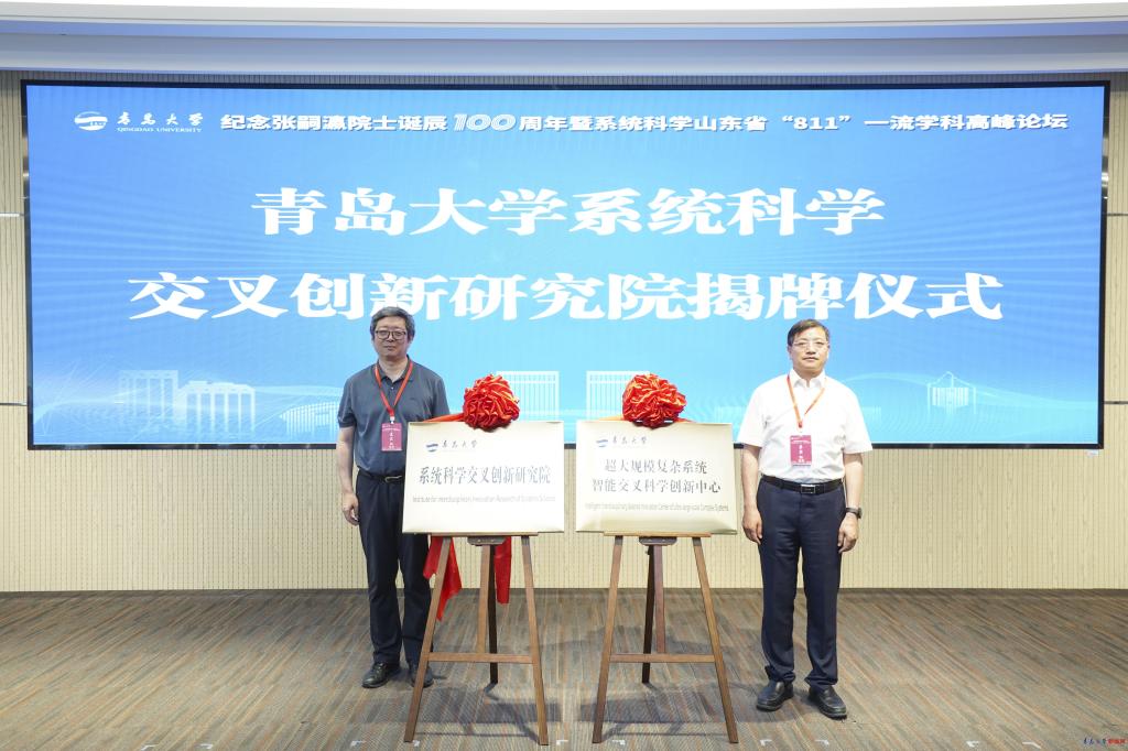 会上,YABO鸭脖系统科学交叉创新研究院暨超大规模复杂系统智能交叉科学创新中心揭牌仪式隆重举行,魏志强和郭雷共同为研究院揭牌。