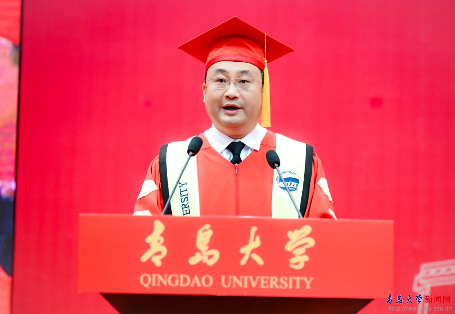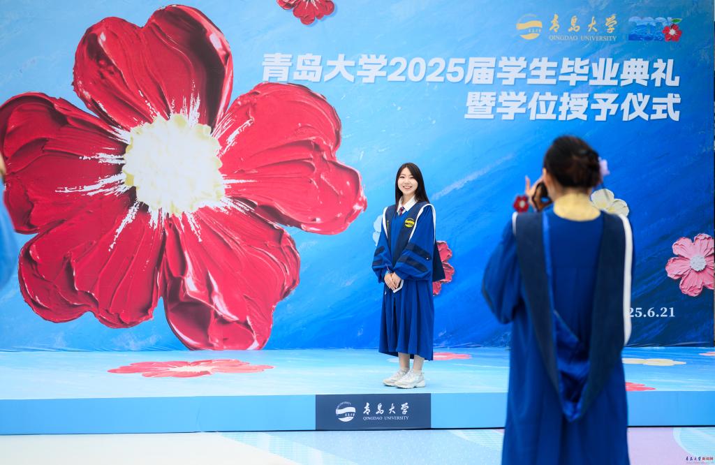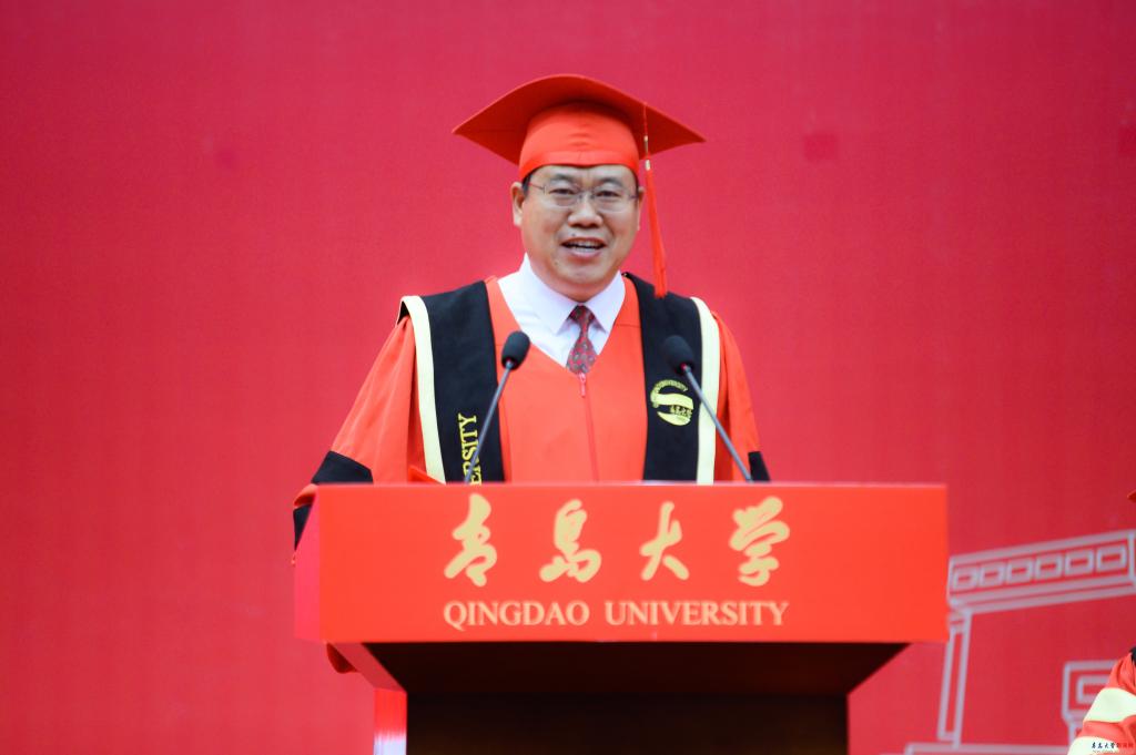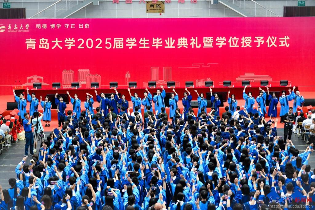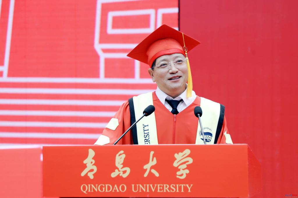 毕业生代表青岛医学院张豪讲述了他的学术攀登之路,希望同学们怀揣向上攀登的勇气、智慧与赤诚,乘风破浪,一往无前,共同续写属于新时代青年的辉煌篇章。