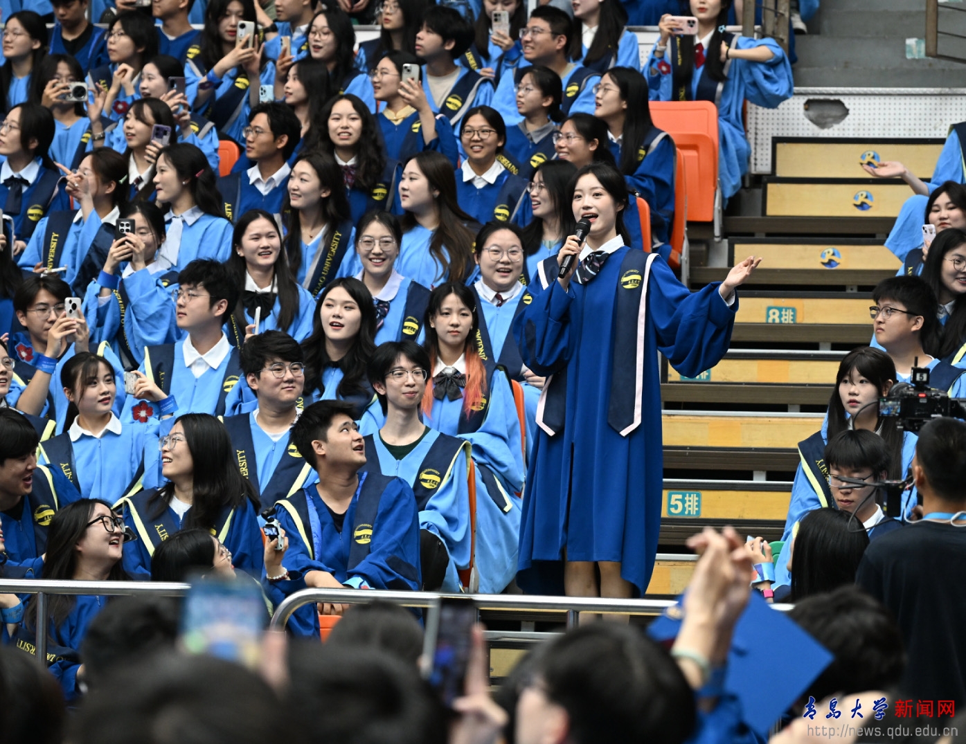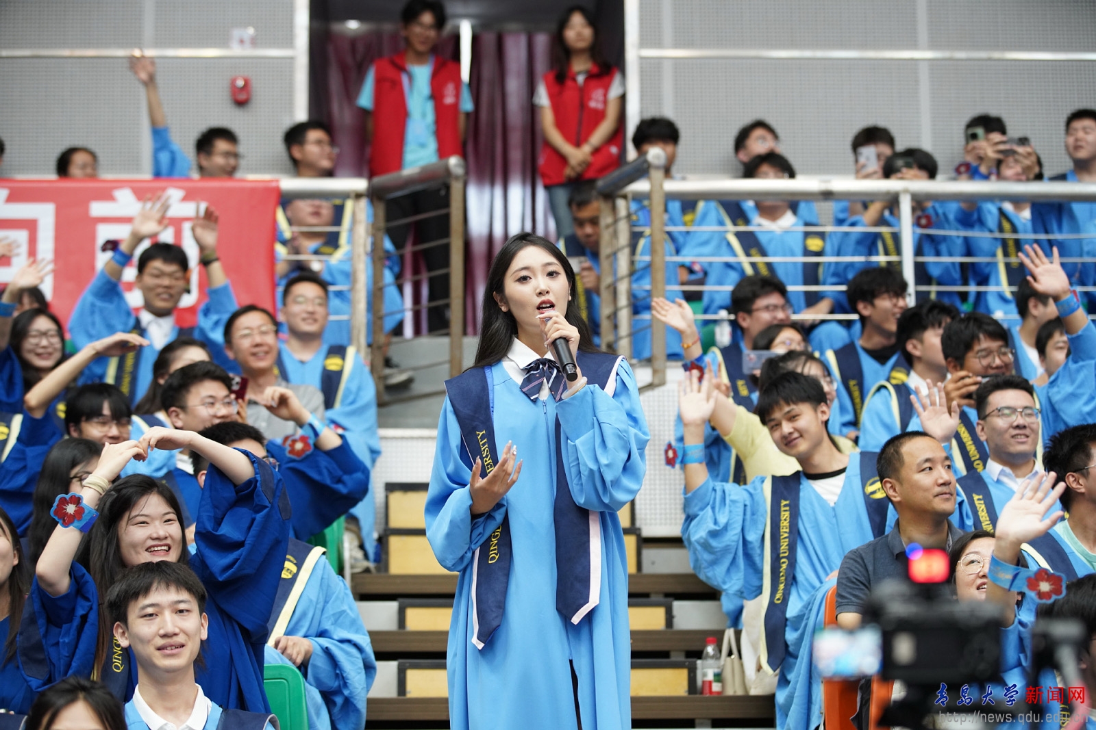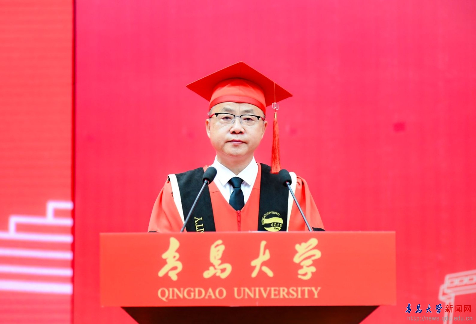 毕业生代表青岛医学院张豪讲述了他的学术攀登之路,希望同学们怀揣向上攀登的勇气、智慧与赤诚,乘风破浪,一往无前,共同续写属于新时代青年的辉煌篇章。