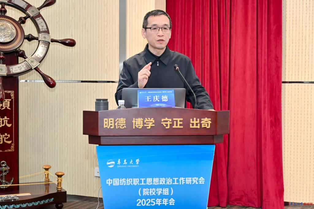 郑国锋在讲话中表示,此次年会是深入学习贯彻党的二十届四中全会精神、扎实落实《中国共产党思想政治工作条例》的具体行动。年会对于学习贯彻习近平总书记关于教育、科技、人才的重要论述和关于高校思想政治工作的重要论述,共商“十五五”纺织高校思政育人大计,共谋产业未来发展人才根基,高质量践行立德树人根本任务具有重要指导意义。他强调,要高站位谋局,以教育强国战略锚定思政育人新坐标;要高标准建制,以鼎固创新体系拓宽思政育人新路径;要高质量践行,以四位一体行动编织思政育人新篇章。他希望各高校能够以习近平新时代中国特色社会主义思想为指引,牢记“为党育人、为国育才”的初心使命,让思政之花绽放在纺织教育的沃土上,让匠心之志熔铸于产业升级的征程中,为建设现代化纺织强国和教育强国作出新的更大贡献。