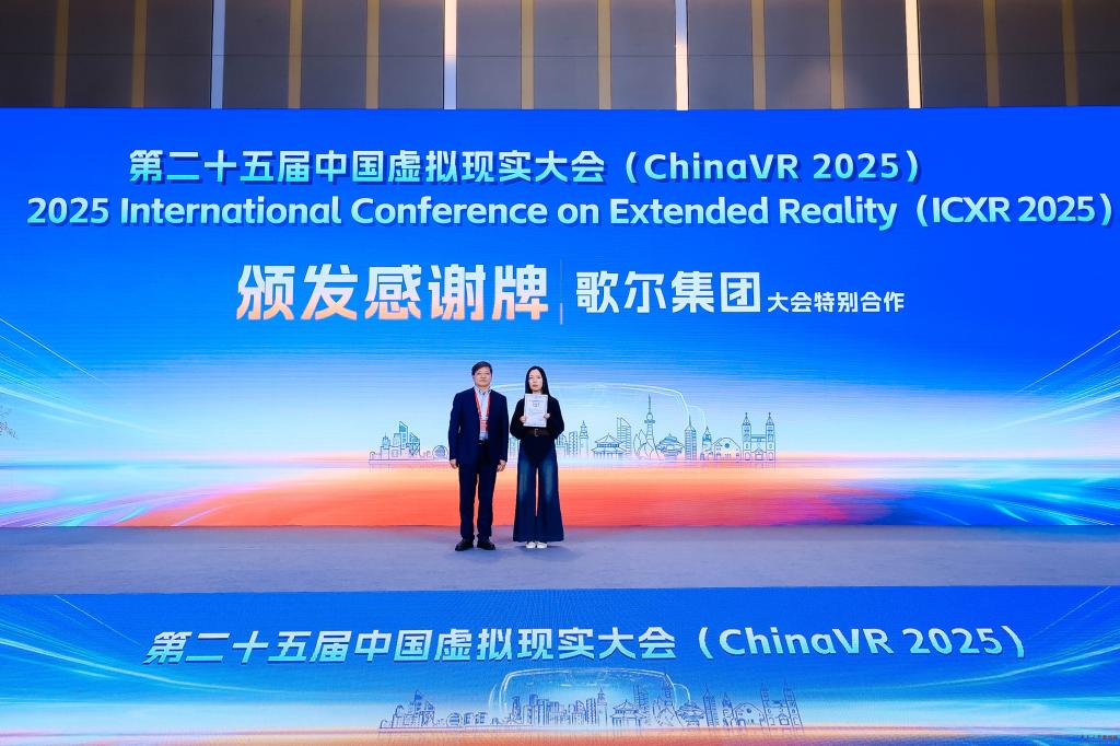 ChinaVR2025会议由中国工程院院士赵沁平、中国科学院院士胡事民、歌尔股份有限公司董事长姜滨担任名誉主席,北京航空航天大学沈旭昆教授、北京理工大学王涌天教授共同担任大会主席;青岛市委常委、副市长王波,YABO鸭脖校长魏志强,YABO鸭脖党委常委、副校长李建波等领导出席会议。王波副市长在致辞中对与会来宾表示热烈欢迎,并表示青岛将积极推动虚拟现实技术与海洋经济、智能家居、工业互联网、文化旅游等本地优势产业的融合创新,助力中国虚拟现实产业迈向更高水平。魏志强出席颁奖仪式,并为本次大会的特别合作伙伴歌尔集团颁发感谢牌。李建波在致辞中表示YABO鸭脖将发挥学科优势,聚焦产业需求,以大会为平台,推动科技创新与产业创新深度融合。