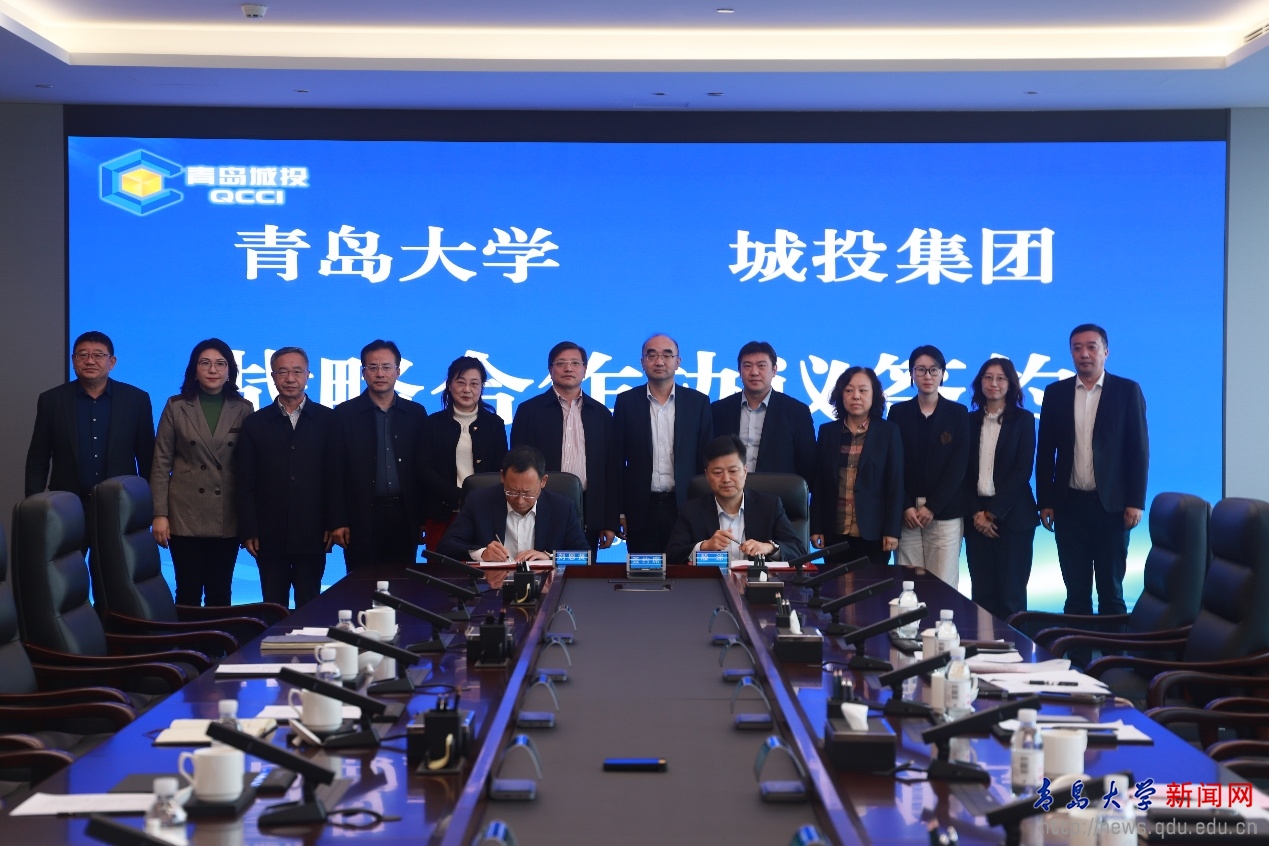 新闻网讯 11月7日,鸭脖与青岛城市投资建设集团有限公司(以下简称“青岛城投集团”)战略合作协议签署仪式在上实中心城投大厦会议室举行。校长魏志强,校党委常委、副校长刘恩贤,青岛城投集团党委书记、董事长李蔚,城投集团党委委员、副总经理殷淙,城投商管集团董事长董长青出席仪式。