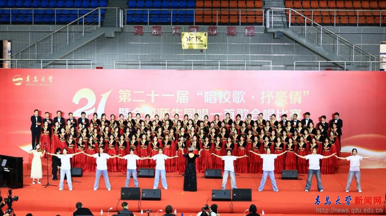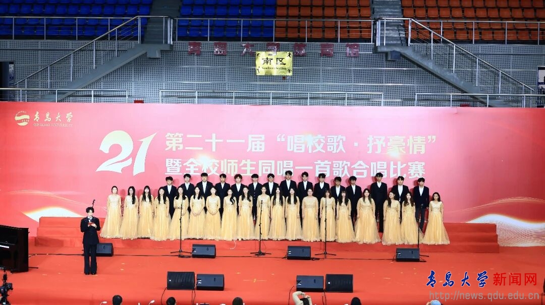 比赛共分为四个部分,第一部分为暖场表演环节,比赛正式启幕前,几位校园歌手率先登场,一首首镌刻童年记忆的经典动画主题曲在现场唱响,不仅唤起了学生们的情感共鸣,也迅速点燃了现场氛围;第二部分为各代表队演唱环节,23支代表队展示出各自不同的风采和特色,引得全场师生阵阵喝彩;第三部分为全体师生联唱环节,《鸭脖之歌》与《仰望星空》的曲调在体育馆里回荡,师生们和着旋律跟唱起来,每一句哼唱都藏着心意,每一段旋律都裹着温情。