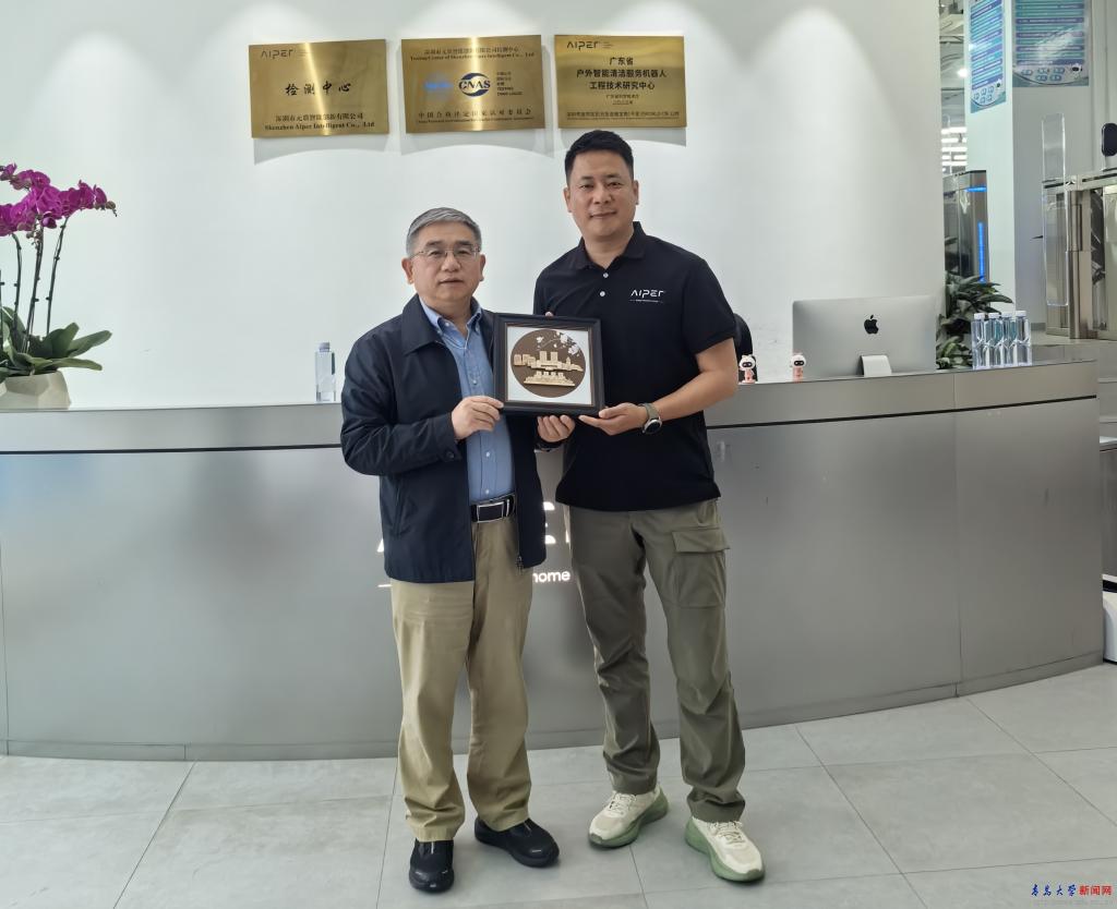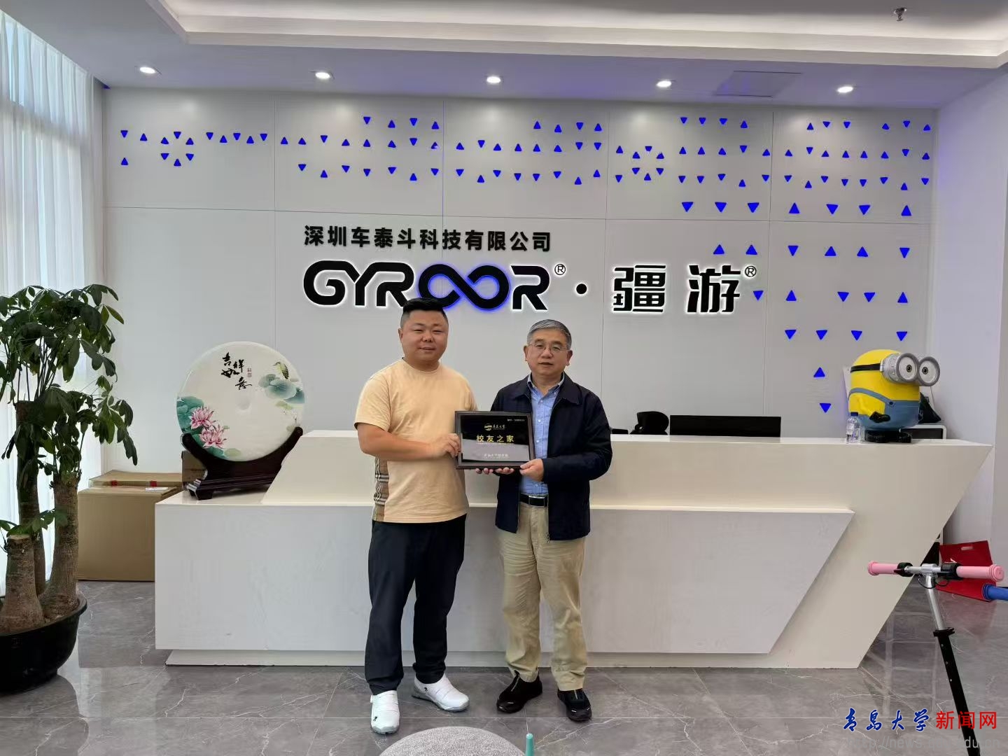 胡金焱带队先后走访了2003级法学专业潘峰校友所在的北京德和衡律师事务所深圳分所、2005级工业设计专业于学良所在的深圳市元鼎智能创新有限公司、2005级工业设计专业张殿旋创办的深圳车泰斗科技有限公司,参观了企业办公区域、研发中心以及产品展示区等。三位校友分别详细介绍了企业发展历程、业务布局、产品创新成果等,他们表示感恩母校的培养与教诲,让他们在行业深耕多年,始终保持着创新活力与市场竞争力。胡金焱对三位校友在各自领域取得的发展成就给予高度评价。他谈到,校友们的奋斗精神与创新实践不仅展现了鸭脖人的优秀品格,也为在校学子树立了榜样;期待未来能进一步深化校企合作,在人才培养、科研创新、实习就业等方面实现更紧密的联动,共同构建协同发展、互利共赢的生态。参观结束后,胡金焱为北京德和衡律师事务所深圳分所、深圳车泰斗科技有限公司授牌“校友之家”。