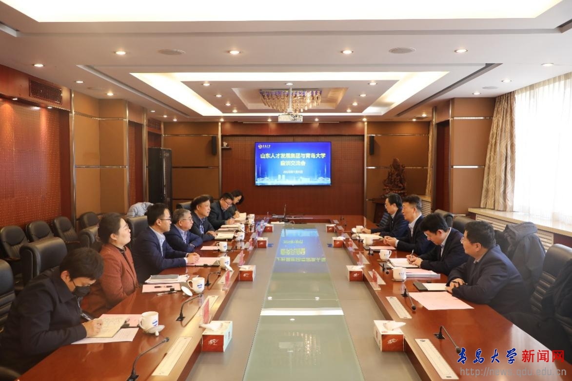 胡金焱代表学校对杨光军一行的到来表示欢迎,并重点介绍了学校在人才队伍建设、优势特色学科建设、科技成果转化等方面的实践经验与显著成绩。胡金焱指出,学校坚持人才强校核心战略,依托优越的城市发展平台、多学科交叉融合的办学优势以及基础教育和医疗资源配套资源,着力构建“一体两翼”的人才发展支撑体系。近年来,高层次人才自主培育成效显著,人才集聚成效彰显。胡金焱表示,希望以此次交流为契机,借助山东人才发展集团的平台优势与专业力量,进一步拓展学校的人才工作视野,创新人才服务机制,携手为山东省和青岛市的高质量发展提供更加强劲的人才智力支撑。