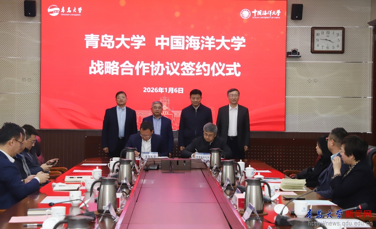 签约仪式上,校党委常委、副校长刘恩贤和中国海洋大学党委常委、副校长刘勇分别代表双方签署战略合作协议,胡金焱、魏志强、李明、张峻峰共同见证签约。根据协议,双方将在学科建设、人才培养、师资队伍建设、科学研究、文化建设等方面开展多渠道、多层次、多形式的合作,聚焦医学、信息科学与工程、医工交叉等领域协同发展,提升本科生教育和研究生培养水平,促进资源共享、优势互补,共同为加快推进教育现代化、建设高水平大学、服务国家重大战略和地方经济社会高质量发展作出新的更大贡献。
