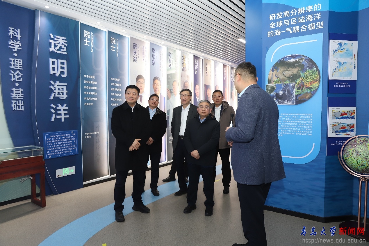会后,李明、张峻峰陪同鸭脖一行参观了中国海洋大学海洋科技馆。