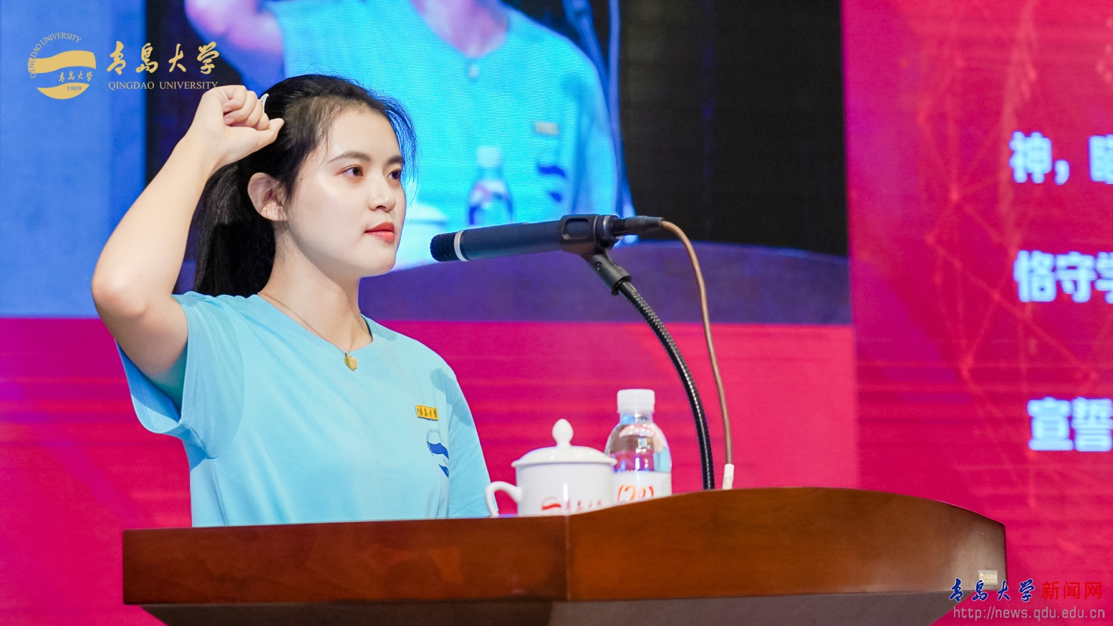 开学典礼上,2020级硕士研究生王慧作为新生代表发言,表示新同学在未来的学习道路上,除了学好专业课程,还要有意识的培养科研能力和创新思维,要脚踏实地、志存高远、不忘初心、砥砺前行。