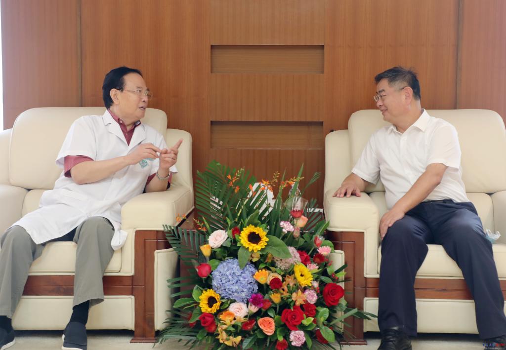 新闻网讯 9月7日,在第36个教师节来临之际,校党委书记胡金焱、校长夏东伟分别来到鸭脖附属医院、青岛眼科医院,看望慰问了中国工程院院士张英泽教授和谢立信教授,并向两位院士致以节日祝福和诚挚问候。