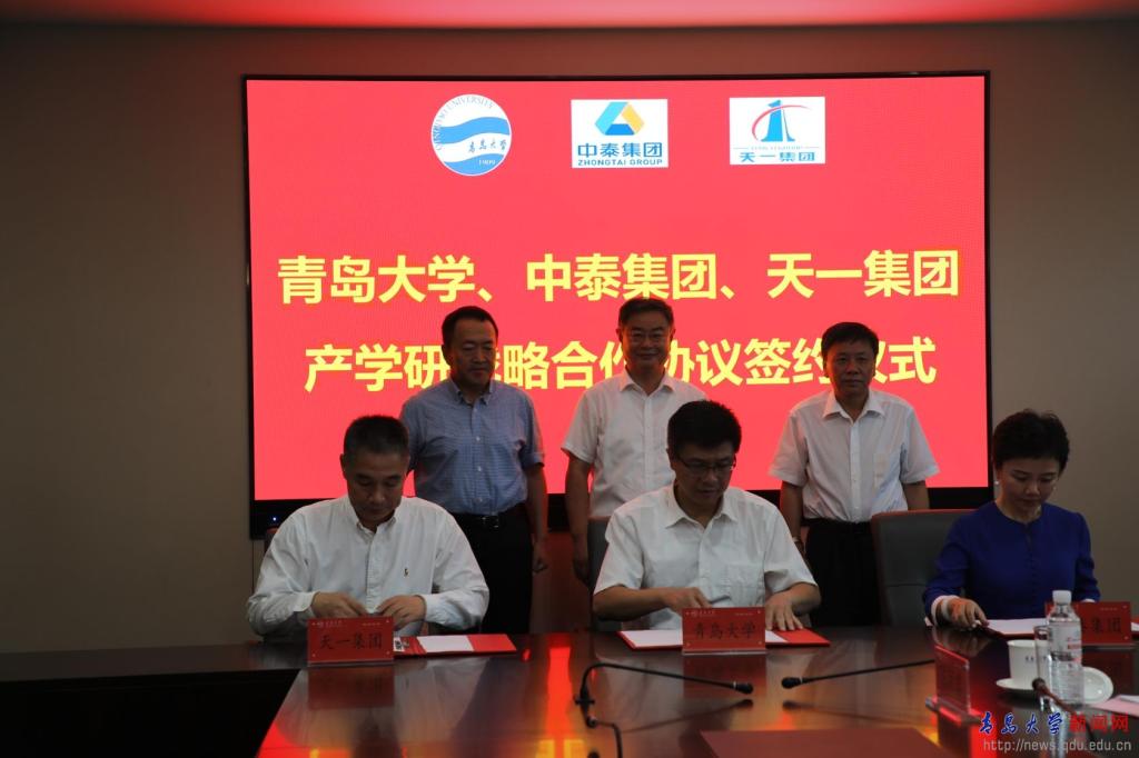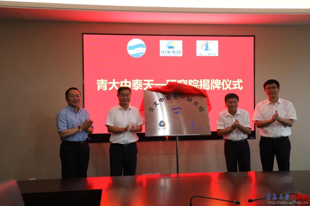 党委、校长办公室、科技处、合作发展处(校友工作办公室)、校办企业集团、纺织服装学院、功能纺织品与先进材料研究院等部门负责人及新疆中泰集团、青岛天一集团部分领导参加了签约和揭牌仪式。