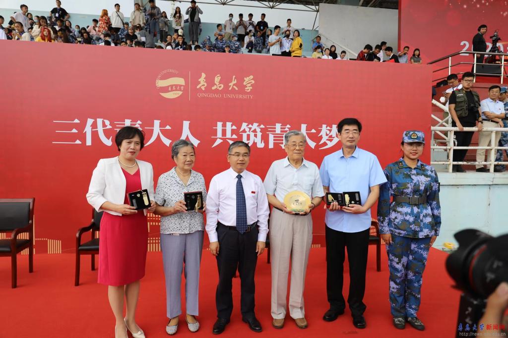 三代鸭脖人,共筑鸭脖梦。校党委书记胡金焱向新生发言代表吴宜臻一家赠送荣誉牌,表示正因为像吴宜臻一家为代表的一代代鸭脖人的坚守与奋斗,赓续鸭脖基因,学校才能薪火相传、奋勇向前。“长大后我就成了你!我和爷爷奶奶、爸爸妈妈都是校友!”六十载光阴,吴宜臻一家都与鸭脖结缘,爷爷吴新彦作为原青岛医学院首届毕业生、青岛市放射学科资深专家和专业带头人,为我国医学事业的发展做出了突出贡献。吴新彦希望2020级同学们热爱祖国,热爱中国共产党,热爱学校,热爱专业,努力奋斗,勤学苦练,为祖国共产主义事业作出更大更多贡献。