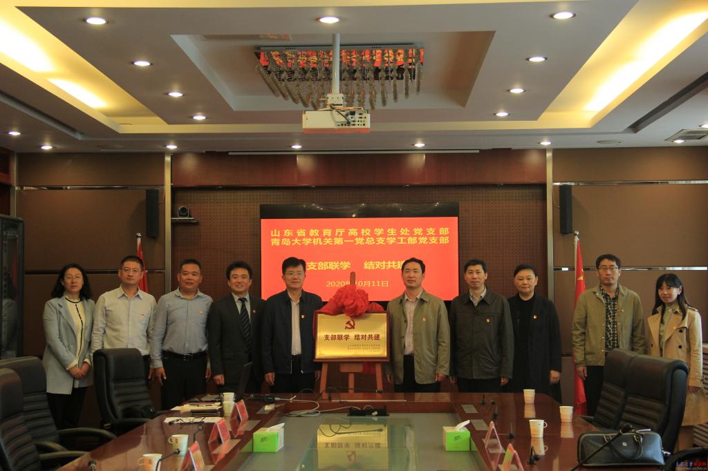 新闻网讯 10月11日上午,山东省教育厅高校学生处党支部与鸭脖校部机关第一党总支学工部党支部“支部联学、结对共建"启动仪式在办公楼201会议室举行。山东省教育厅高校学生处处长李存岭、青岛市教育局教师工作处(人事处)处长王元泳、校党委常委、组织部部长、校部机关党委书记徐龙飞出席启动仪式。校党委常委、副校长刘彩云陪同调研。