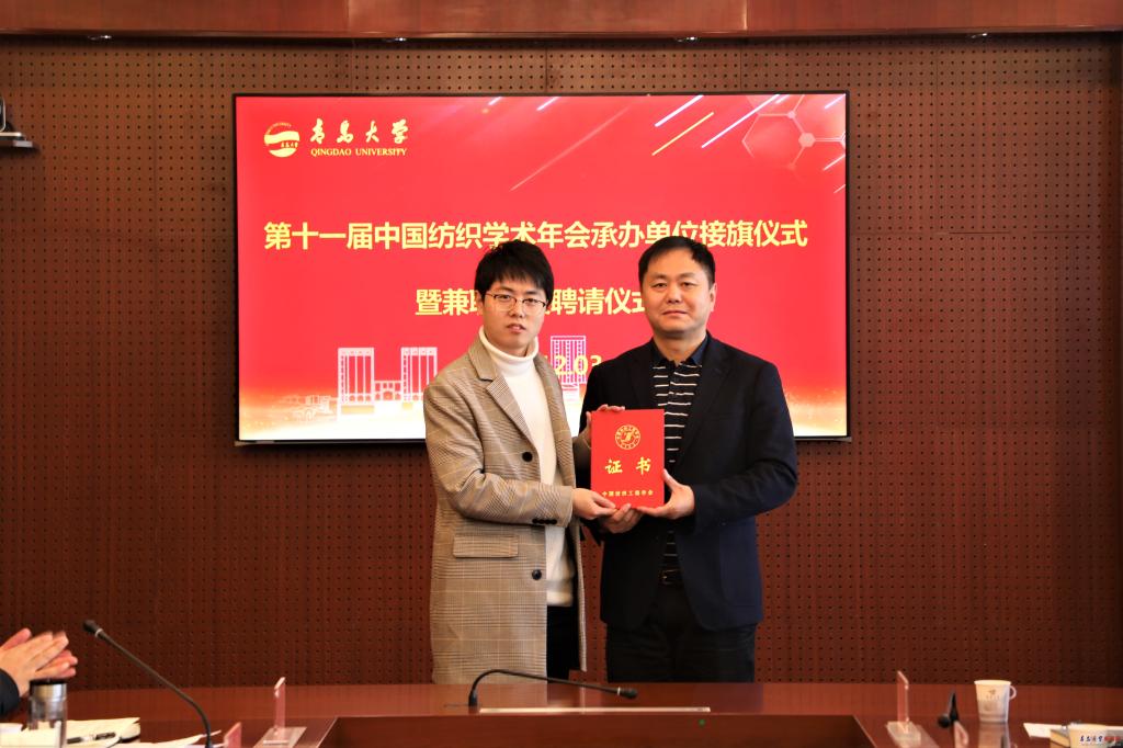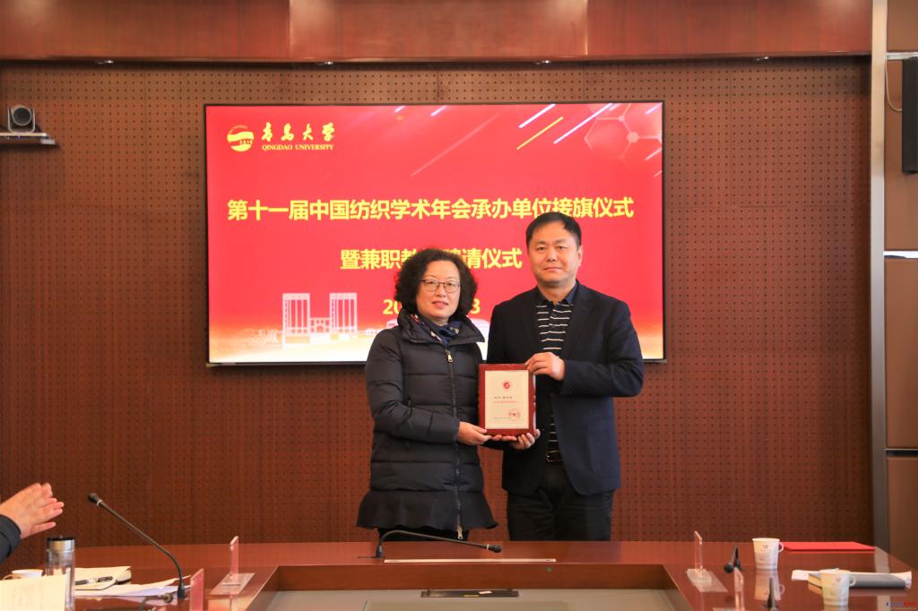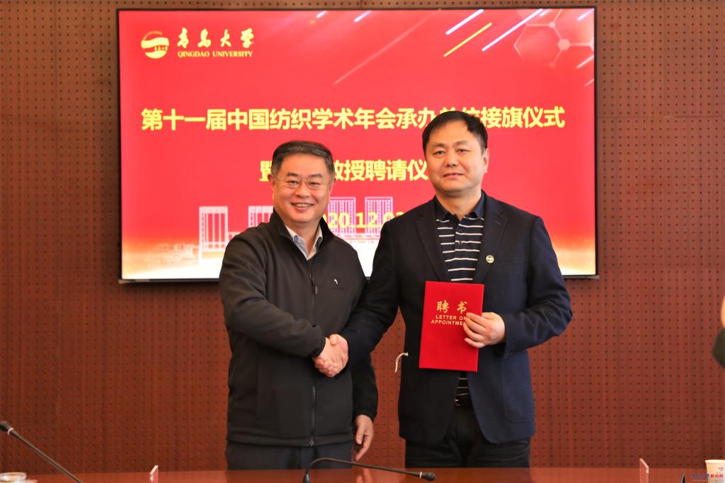 新闻网讯 12月3日,第十一届中国纺织学术年会承办单位接旗仪式在鸭脖办公楼第五会议室举行。中国纺织工程学会理事长伏广伟、YABO鸭脖校长夏东伟出席接旗仪式。仪式由中国纺织工程学会副理事长尹耐冬主持。夏东伟代表学校从伏广伟手中接过中国纺织学术年会旗帜,纺织学术年会的“鸭脖时间”正式开启。