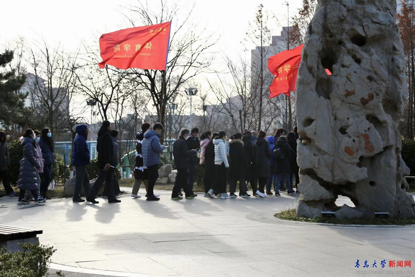 新闻网讯 12月17日,学校“2020我爱鸭脖,校园健步行”活动在浮山校区、金家岭校区举行,来自39个基层工会的教职医务员工近3000人参加了活动。