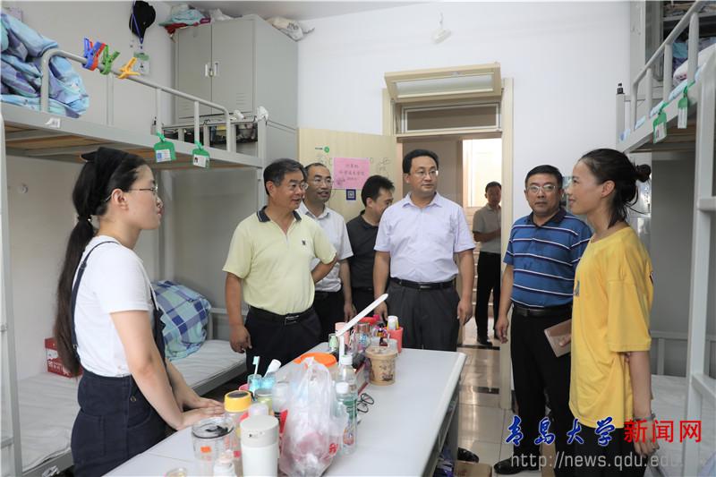 夏东伟来到滢园学生宿舍,详细了解了学生学习、生活、考研等方面的情况,勉励他们既要积极做好考试和考研准备工作,还要注意防暑降温和保持良好心态。夏东伟还到浮山书店等学生生活服务区进行调研,要求所有单位尽量给学生提供舒适的学习环境。