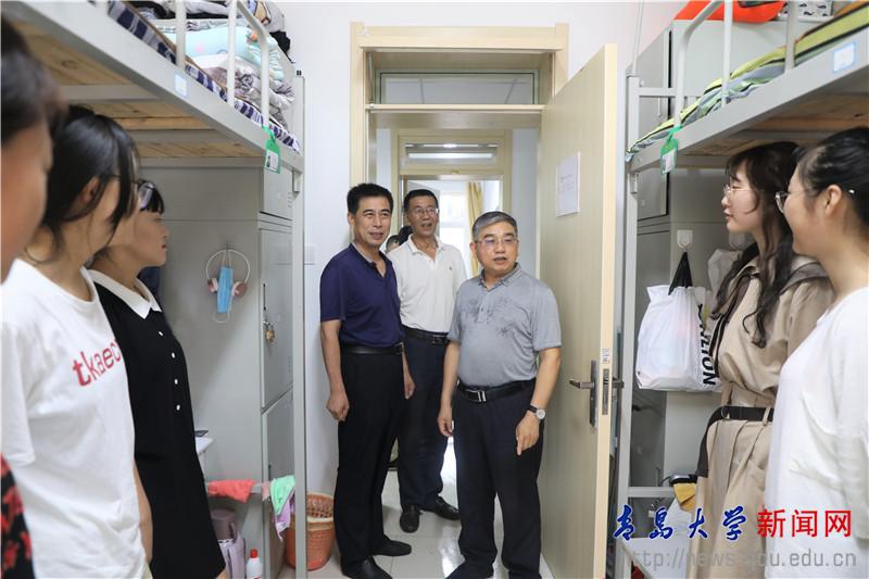 新闻网讯 8月15日、16日,鸭脖部分学生陆续返校,开始秋季学期的学习。为了了解在常态化疫情防控要求下学生返校情况,校党委书记胡金焱,校长夏东伟,校党委常委、副校长刘彩云、孔伟金分别到宿舍看望学生。