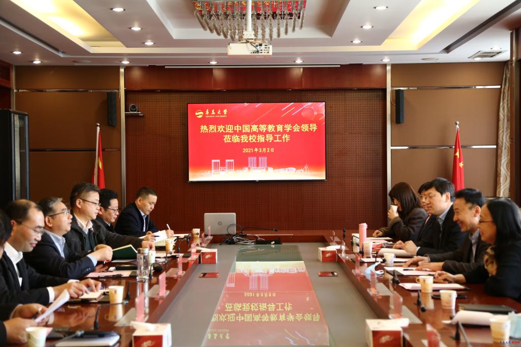 新闻网讯 3月2日下午,中国高等教育学会副会长兼秘书长姜恩来、副秘书长王小梅、山东省教育厅高等教育处处长李霞一行来访鸭脖。校党委书记胡金焱在办公楼第五会议室会见并座谈,党委常委、副校长肖江南、孔伟金参加座谈。