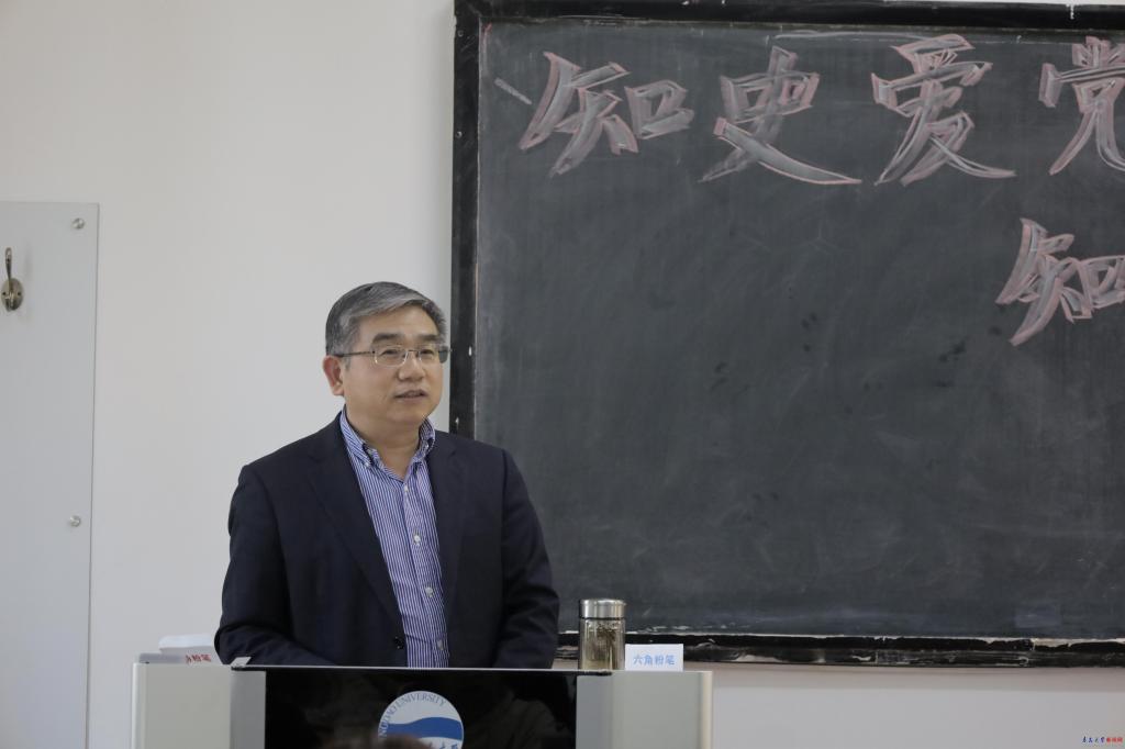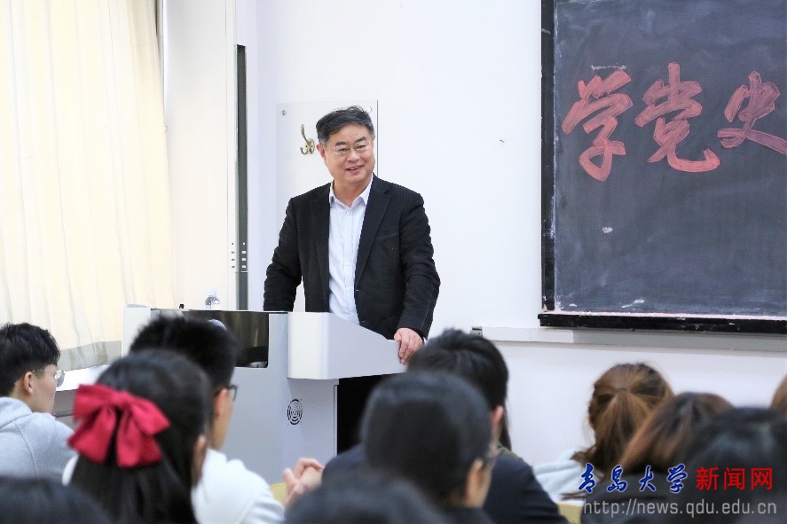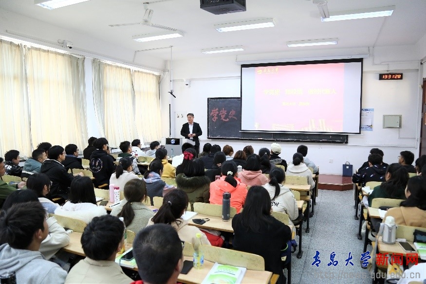 3月5日下午,校党委书记胡金焱在浮山校区博学楼204教室以“知史爱党、知史爱国、知史明志”为题,为新闻与传播学院2020级100余名本科生讲授思政课。