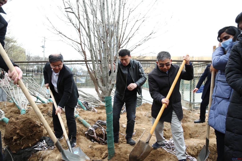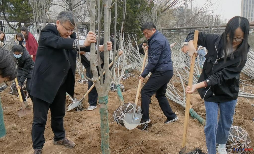 此次义务植树活动在浮山校区西院宁德路人防过街地下通道附近的空地集中栽植西府海棠110棵。校领导与中外学子共同挖坑、培土、栽植,大家齐心协力、干劲十足,空地转瞬成林。现场欢声笑语,一派热火朝天的春日劳动景象。