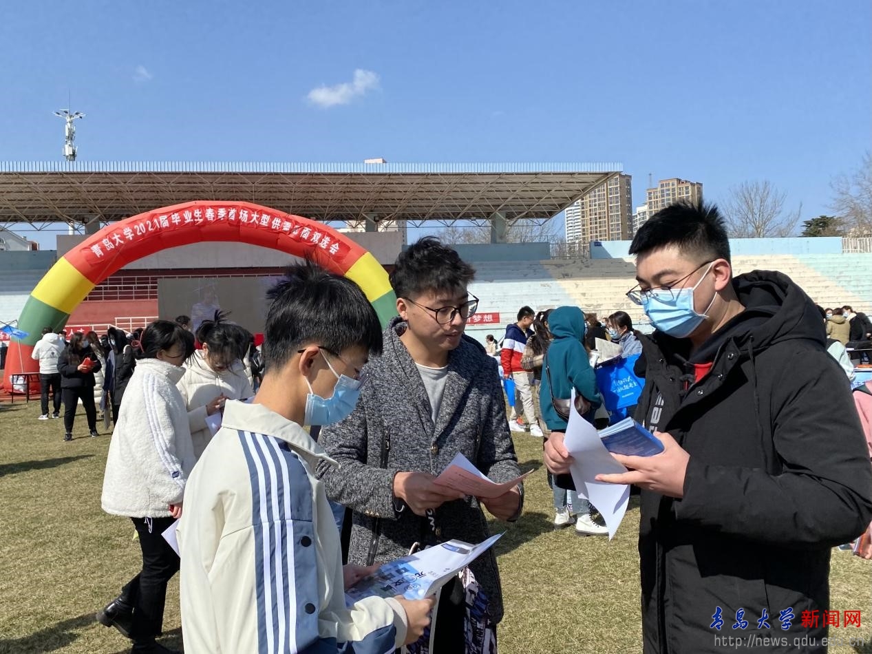 此次活动分为2个会场,浮山校区西院体育场作为山东省师范类高校毕业生就业双选会主会场,采取“线上+线下”联动方式精准引才,吸引了沂源县教体局、青州中学、临淄区英才中学、山东省诸城市青潍中学等50余家中小学和新东方、金石教育、学而思、中公教育等70余家教育机构到校招聘,教育类用人单位占比27%;本次双选会还吸引了青岛啤酒、歌尔股份、利群集团、豪迈集团、山东魏桥创业集团等329家非师范类用人单位到校招聘。本次双选会共提供就业岗位数量22674个,热门专业主要有市场营销、化学与化工、英语、计算机、物理、数学、国际经济与贸易、机械工程、自动化、电子信息等专业,为不同学历和专业的毕业生搭建了良好的择业平台。活动现场人潮涌动、洽谈咨询气氛热烈,共发放宣传材料近10000份,接受求职咨询3000余人次,收到简历7000余份。此次双选会活动在浮山校区博文楼前广场设置了医学类分会场,吸引了青岛阜外医院、广州医科大学附属第三医院、潍坊眼科医院、日照口腔医院、鲁南制药集团等36家医学类用人单位到校招聘,提供就业岗位1000余个,涵盖临床、检验、影像、口腔、护理、药学、基础医学等各医学专业,学历要求从本科到博士不等,满足了不同专业类型应届毕业生的就业需求,吸引了众多毕业生前来应聘。