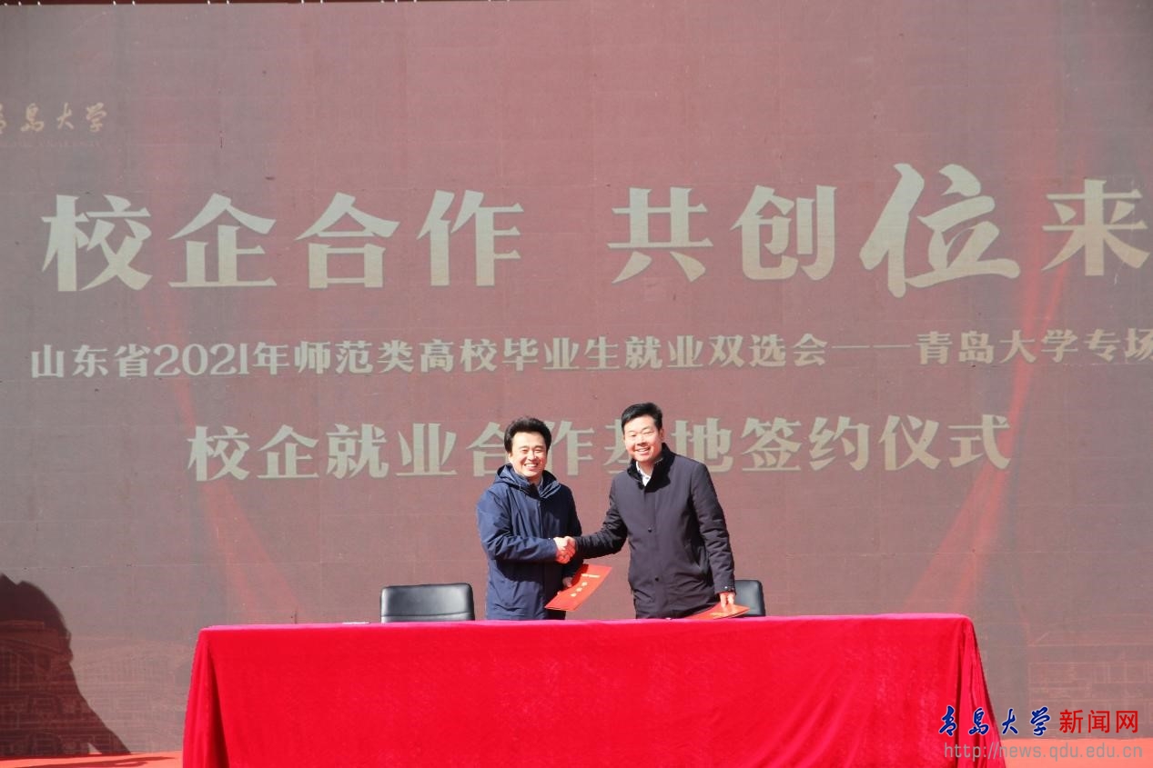为进一步加强学校与用人单位就业合作,深化校地(企)联动,搭建快捷有效的双选平台,促进人才与智力相互支持,实现互惠共赢,借此次双选会之际,学校现场与20家优质企业签署“就业合作基地”协议。山东省教育厅高校学生处副处长任永红,校党委常委、副校长刘彩云出席签约仪式。