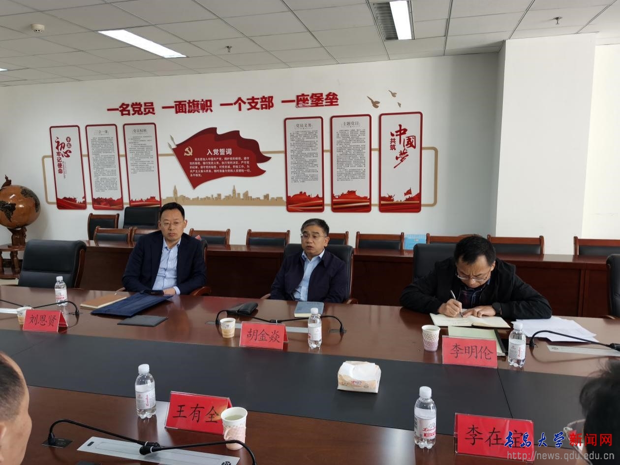 新闻网讯 4月14日上午,校党委书记胡金焱一行到药学院进行工作调研。在浮山校区浩园,胡金焱一行实地走访了位于医学教育综合楼的药学院科研实验室并听取了药学院党委书记李在宝及院长王克威的工作汇报。