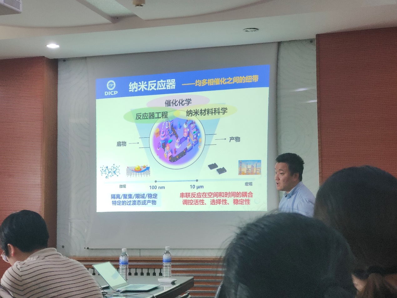 刘健研究员首先介绍了纳米反应器的特点,并由自然界中的化学转化引出具有限域效应的微/纳米反应器,利用微/纳米反应器可以提高反应的效率和选择性,并可以在温和的条件下催化化学反应,所以设计合适的反应器并优化操作条件是化学工程中至关重要的步骤。他还介绍了课题组在微/纳米反应器领域的最新研究进展:1.实现不同形貌和结构的纳米反应器定制;基于空间限域效应、隔离效应、协同效应等催化机制,将构筑的微/纳米反应器应用于催化理论基础研究;2.认识微/纳空间中的催化反应过程,揭示纳米反应器中串联催化反应在空间和时间的耦合问题;3.纳米反应器在金属-硫/硒等涉及催化反应电化学电池中的应用和重大疾病的早期诊断的应用研究。最后,指出了纳米反应器在应用中的局限性:材料宏观和微观尺度无法实现有效的衔接,尽管创造了多样的纳米制造技术,但微纳甚至更小尺度的科学问题亟需深入研究和发展。