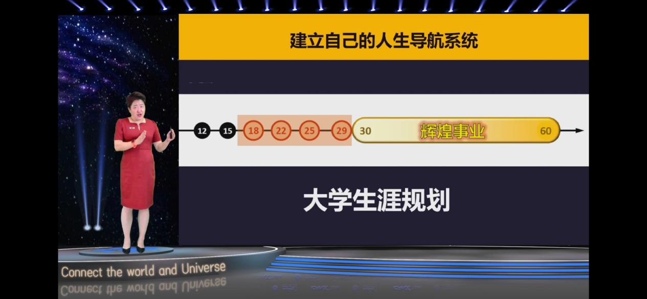 张海霞教授以一个在北大亲身经历的故事为起点,根据新生刚来到大学,生活发生巨变的现象,由此提出八个问题:“我是谁”“学什么”“谁管我”“跟谁学”“跟谁玩”“为谁学”“怎么过”“怎么做”来帮助新生们正确过渡到大学生活中。强调大学生涯规划的重要性,要建立人生的导航系统,正确认识自身的个性特质、树立明确的职业发展目标与职业理想、增强目的性从而提升成功的机会。大学新生应该在追求理想、感悟体验生活的基础上重新定义约束自己,每个人要认真做好人生规划,让自己的大学生活更充实,更有意义。