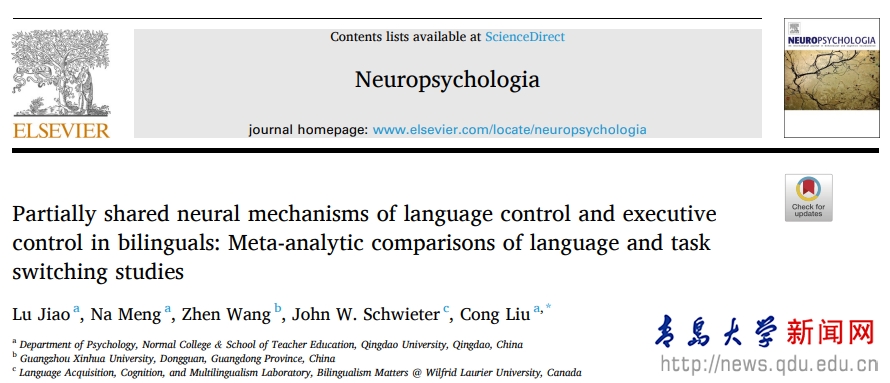 王涵在Bilingualism: Language and Cognition(SSCIQ1, IF =3.532)发表题为 《Theforeign language effect on altruistic decision making: Insights from the framing effect》的研究论文,该研究利用脑电技术探讨了利他决策中的外语效应;孟娜在Neuropsychologia(SSCIQ2, IF =3.139)发表题为《Partially shared neural mechanisms of language control and executive control in bilinguals: Meta-analytic comparisons of language and task switching studies》的研究论文,该研究利用脑成像ALE元分析探讨了双语者语言控制和执行控制神经基础的异同;段晓婷在Journal of Neurolinguistics(SSCIQ2, IF =1.71)发表题为《Comprehension-based language switching between newly learned languages: The role of individual differences》的研究论文,该研究利用脑电技术探讨个体差异对新学语言间语言转换的影响。上述三项研究成果的指导教师为学院心理学系脑与语言认知实验室(https://www.jlclab.com/)的刘聪副教授与焦鲁副教授。