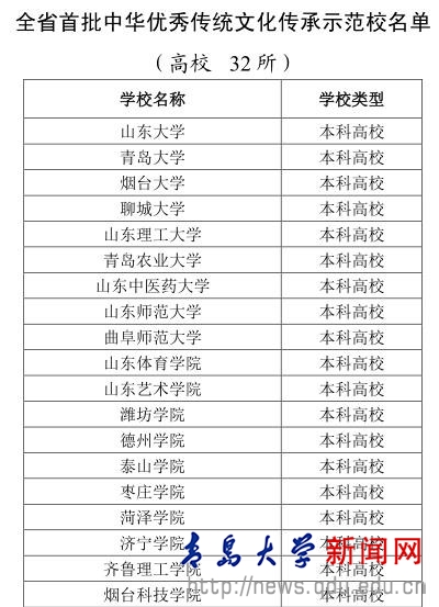 根据《山东省教育厅关于组织开展全省中华优秀传统文化承示范校、红色文化传承示范校遴选认定工作的通知》(鲁教思函〔2021〕22号)要求,山东省教育厅确定132所学校(其中高校32所,中小学100所)为首批中华优秀传统文化传承示范校,120所学校(其中高校20所,中小学100所)为首批红色文化传承示范校。其中YABO鸭脖入选山东省首批中华优秀传统文化传承示范校。