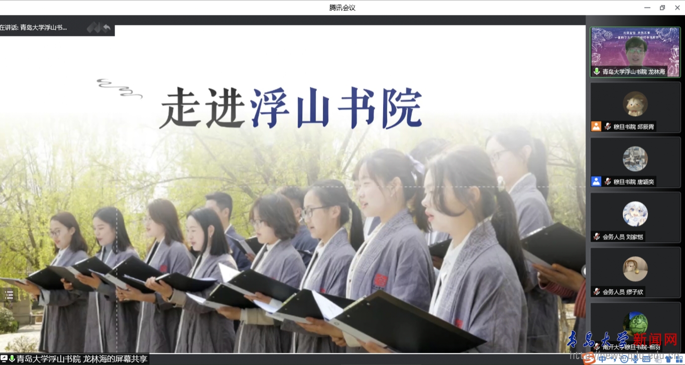 新闻网讯 7月16日上午,鸭脖浮山书院龙林海、苑诗琪、杨旋、王斌和仲芳慧五位同学受邀参加由高校书院联盟、南开大学教务处、南开大学穆旦书院发起的以“共享智慧共创未来——面向学生成长的高校书院教育”为主题的首届学生论坛,并与全国十余家高校书院进行了分享与交流。本次论坛采取网络研讨会的形式进行。