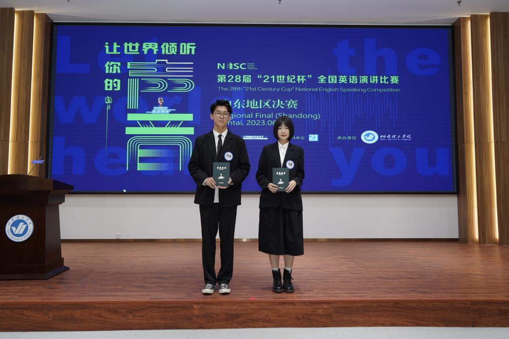 本次比赛校园选拔赛设英语专业和非英语专业两个赛道。王筱彤和于昊代表鸭脖参加了山东赛区决赛。在山东地区决赛中两位同学充分展现鸭脖学子的思辨才华和英语能力,经过已备演讲、即兴演讲、答问环节层层考验,以扎实的基本功、富有激情的表达力和昂扬向上的精神风貌赢得了大赛评委的一致认可。