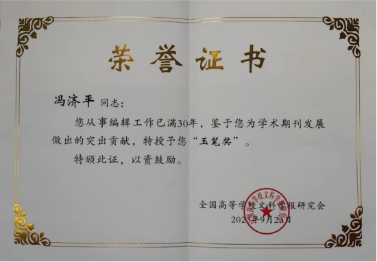 第七届高校社科学术期刊质量检查与评选活动旨在促进高校社科学术期刊高质量发展,加快提升学术期刊内容质量和传播力影响力,检阅会员办刊成绩,总结办刊经验,进一步探索人文社会科学学术期刊未来发展之路。此次期刊质量检查与评估活动,根据期刊质量检查与评估结果,将参评期刊分为“全国高校权威社科期刊”“全国高校精品社科期刊”“全国高校优秀社科期刊”“全国高校质量进步期刊”四个层次,前两个层次的期刊将入编《全国高等学校人文社科核心期刊目录》。此次质量检查与评估活动全国共有1000余家高校文科学报参评,最终评出“全国高校权威社科期刊”95家、“全国高校精品社科期刊”120家。同时,本次评选活动还公布了编辑个人奖项,《东方论坛》副主编、资深编辑冯济平老师荣获“玉笔奖”。
