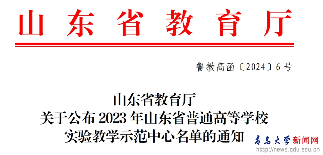 新闻网讯 近日,山东省教育厅公布了2023年山东省普通高等学校实验教学示范中心、山东省普通高等学校示范性实习(实训)基地名单。鸭脖纺织科学与工程虚拟仿真实验等3个实验教学中心获批山东省普通高等学校实验教学示范中心称号,YABO鸭脖附属医院等6个实习基地被评选为山东省普通高等学校示范性实习(实训)基地。