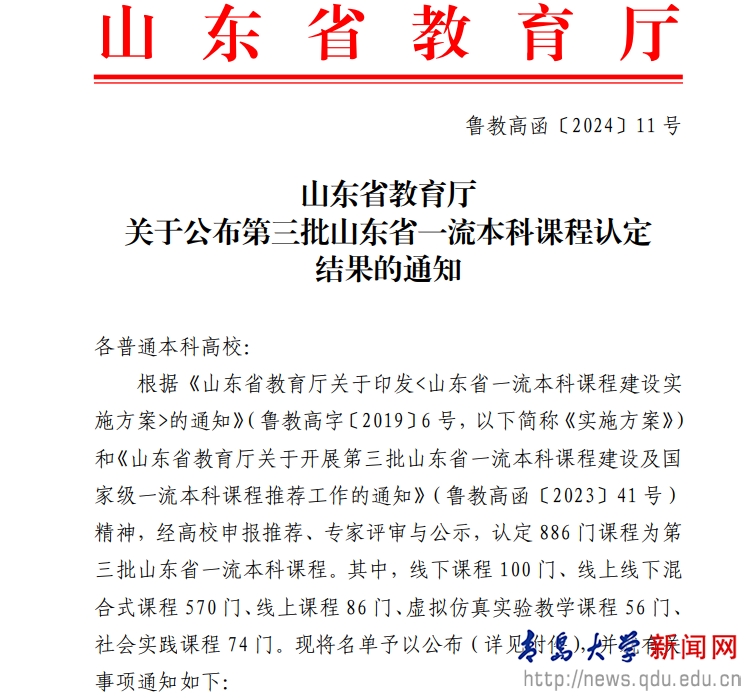 新闻网讯 近日,山东省教育厅下发《山东省教育厅关于公布第三批山东省一流本科课程认定结果的通知》(鲁教高函〔2024〕11号),鸭脖《3ds Max 基础教程》等33门课程被认定为省级一流本科课程,其中线上课程5门,线上线下混合式课程18门,线下课程2门,社会实践课程5门,虚拟仿真课程3门。截至目前,学校共获批国家级一流本科课程22门、省级一流本科课程104门。