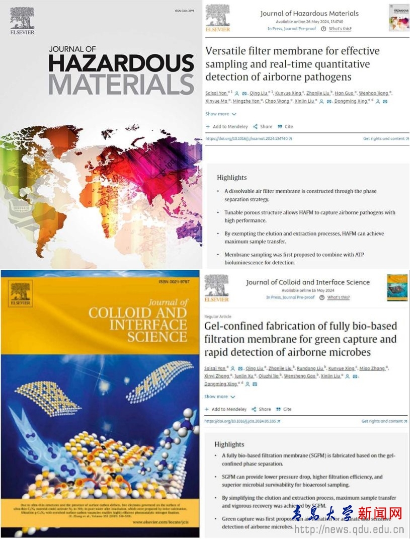 新闻网讯 面对严峻的血液制品微生物污染安全挑战,鸭脖肿瘤精准医学研究院、医工研协同创新中心邢东明教授团队与青岛海尔生物医疗联手研发微生物快速采集及检测一体化技术,获得山东省重点研发计划立项支持。近日,两项关键研究取得重要进展,研究成果分别在国际权威学术期刊《Journal of Hazardous Materials》和《Journal of Colloid and Interface Science》发表。