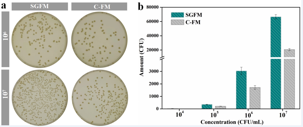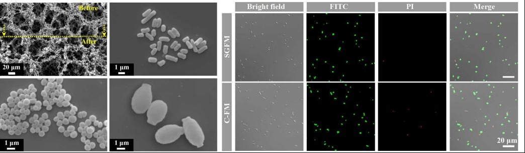 首先,要解决如何让捕获的微生物“活的好、活得长”,以确保检测的准确性、灵敏度。研究团队通过原料、工艺的“双绿色”筛选研究,成功创制出微生物的“绿色抓手”生物膜,能够实现捕获的微生物数量和质量双重保障。与业内标杆德国赛多利斯生物膜进行的对标研究显示,微生物存活率提升了1.5倍。
