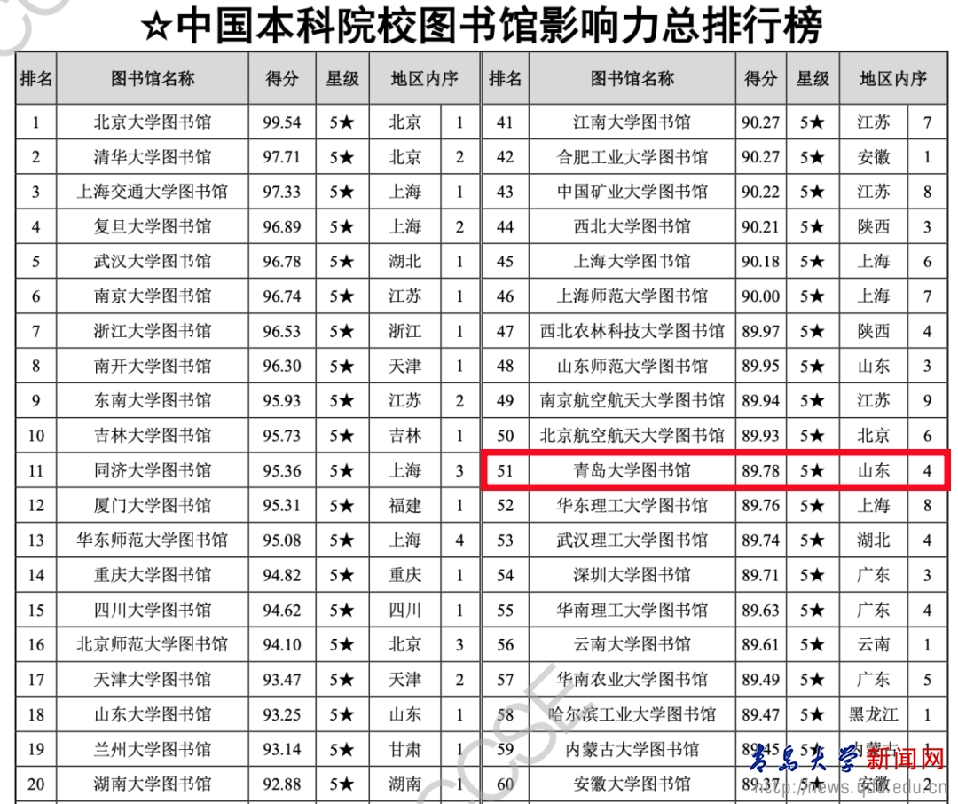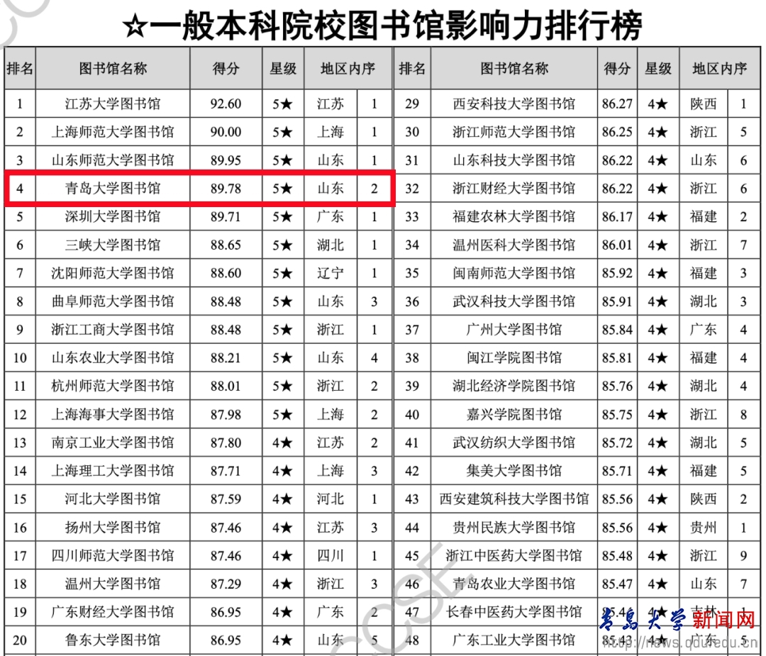 新闻网讯 近日,《数智时代中国图书馆影响力评价报告(2024)》正式发布,鸭脖图书馆进入排名前10%具有突出影响力单位并获评5星级,在中国1275所本科院校影响力排名中比去年提升22个位次、位列第51名,位列一般本科院校图书馆第4名,较去年提升4个位次。