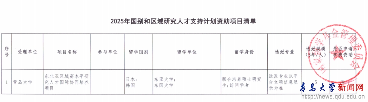 新闻网讯 近日,国家留学基金管理委员会(以下简称“国家留基委”)公布了2025年“国别区域研究人才支持计划”资助项目名单,由鸭脖政治与公共管理学院牵头申报的“东北亚区域高水平研究人才国际协同培养项目”成功获批。这是学校首次获批此类项目,标志着鸭脖区域国别研究人才培养工作取得新突破。