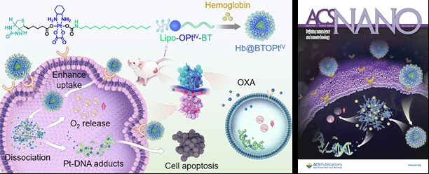 新闻网讯 近日,鸭脖药学院孙勇教授团队在四价铂靶向递送和免疫增强研究方面取得最新研究进展,相关研究成果以“Biotin Receptor-Targeting PtIVOxygen Carrying Prodrug Amphiphile for Alleviating Tumor Hypoxia Induced Immune Chemotherapy Suppression”为题发表在ACS Nano (DOI:10.1021/acsnano.5c00691),并被编辑部遴选为封面文章。该文第一作者为药学院硕士研究生孙开创,共同作者有药学院教师孙勇、韩尚聪和魏登帅等,合作单位有西安交大、中国科学院。