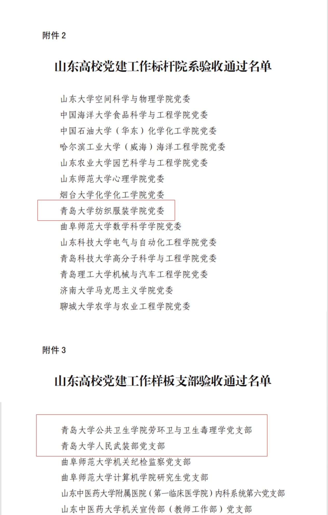 新闻网讯 近日,山东省委教育工委公布了第二批山东高校党建“双创”培育创建工作验收通过名单,鸭脖纺织服装学院党委、公共卫生学院劳环卫与卫生毒理学党支部、人民武装部党支部三个党组织顺利通过验收。