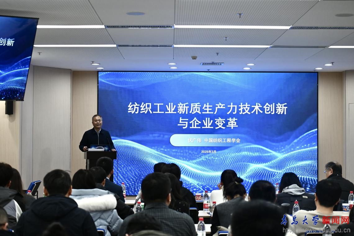 两位校外专家以及纺织服装学院田明伟教授分别围绕“纺织工业新质生产力技术创新与企业变革”“智能纤维器件与装备技术研究”“柔性力敏电子织物及多场景健康穿戴应用” 等主题作学术报告,并与现场师生分享科研经验与心得。来自全校各学院的 150 余名师生参会交流。