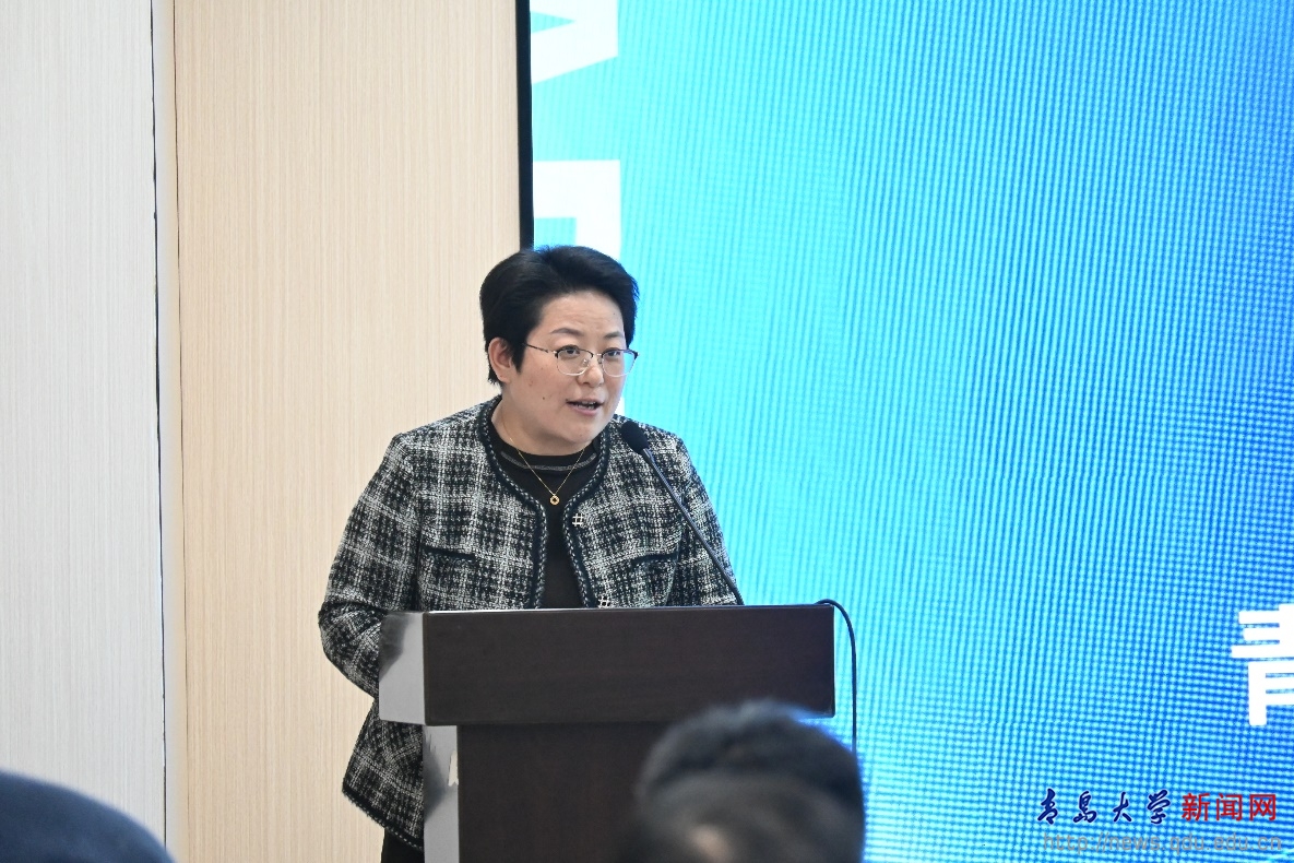 李荣贵简要介绍了学校基本情况和纺织学科的发展历程及现状,从推动“纺织+”学科集群建设、搭建跨学科协同创新平台、培育高水平成果等方面,总结了学校近年来服务国家产业创新升级和山东省纺织服装万亿级产业链发展需求的举措和成效。