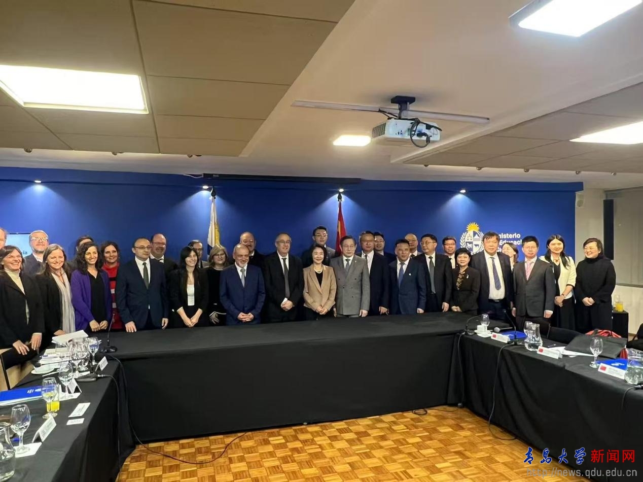 新闻网讯 6月26日下午,中国-乌拉圭政府间科技合作混委会第五次会议在乌拉圭首都蒙得维的亚成功召开。中国科技部副部长林新与乌拉圭教育文化部部长何塞·卡洛斯·马伊亚作为本届混委会双方主席出席会议并致辞。副校长李荣贵率团出席会议,并在会议期间就中国-乌拉圭生物纳米制药联合实验室的建设情况与工作展望作了重要发言。