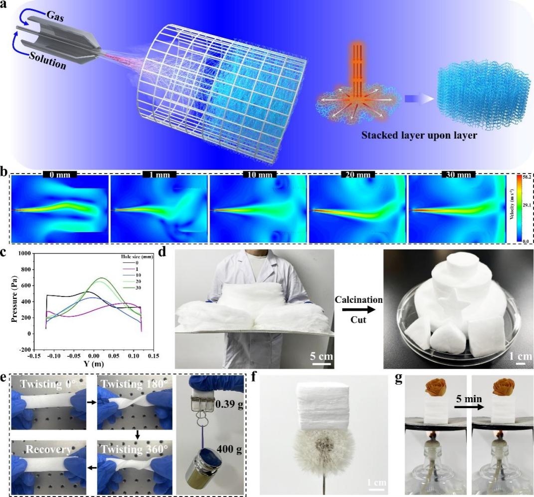 图为多功能柔性可压缩的三维结构压电陶瓷纳米纤维气凝胶