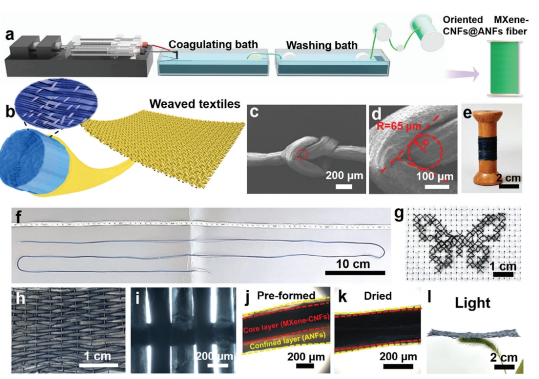 新闻网讯 近日,鸭脖纺织服装学院曲丽君教授、苗锦雷副教授团队在二维纳米片构筑结构-功能一体化轻质高强纤维领域取得重要研究进展,并在高性能纤维纺丝关键技术方面实现突破。相关成果以“Oriented Assembly and Bridging of 2D Nanosheets Enabled High-Performance MXene Composite Fiber via Dual-Spatially Confined Spinning”为题,发表于国际权威学术期刊 Advanced Functional Materials。
