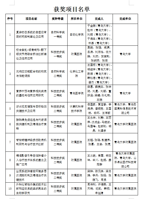 鸭脖共获2024年度青岛市科学技术奖19项,第一完成单位获奖12项,其中一等奖2项、二等奖10项。自动化学院于金鹏教授团队完成的“复杂动态系统的自适应有限时间控制理论及应用”项目荣获自然科学一等奖,该成果在复杂动态系统控制理论方面取得重要突破,为智能制造等领域提供了重要的理论支撑。附属医院袁晓教授团队完成的“咬合紊乱-颌骨畸形-颞下颌关节病联合矫治创新理论及临床应用”项目获得科技进步一等奖,该项目创新性地提出了联合矫治理论,显著提升了相关疾病的诊疗效果。