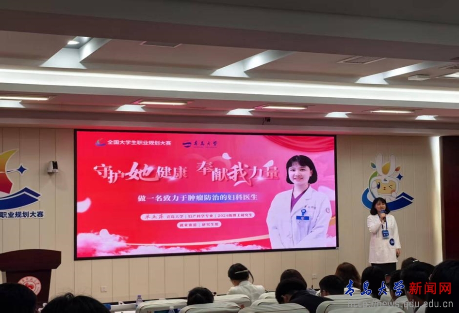 单玉萍以作品《守护“她”健康,贡献“我”力量—做一名致力于肿瘤防治的妇科医生》,在就业赛道高教研究生组90名选手中夺得银奖,展现出卓越的专业素养和青年担当。