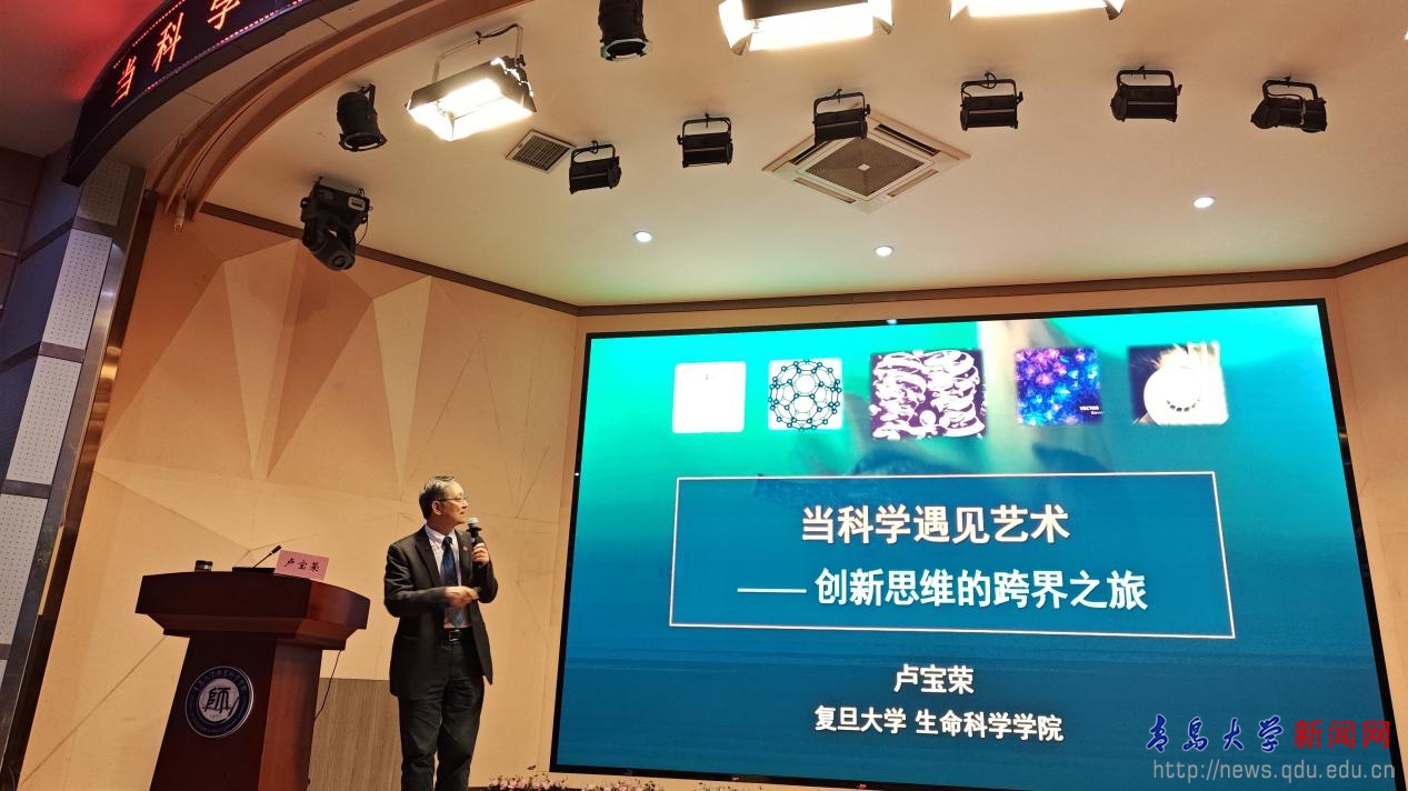 新闻网讯 11月7日晚,复旦大学生命科学学院特聘教授、博士生导师、希德书院院长卢宝荣应邀做客鸭脖“浮山讲堂”第98期,在教育科学学院报告厅为三百余名师生带来题为《当科学遇见艺术:创新思维的跨界之旅》的精彩讲座。本期讲座由鸭脖国家大学生文化素质教育基地主办,浮山书院承办。